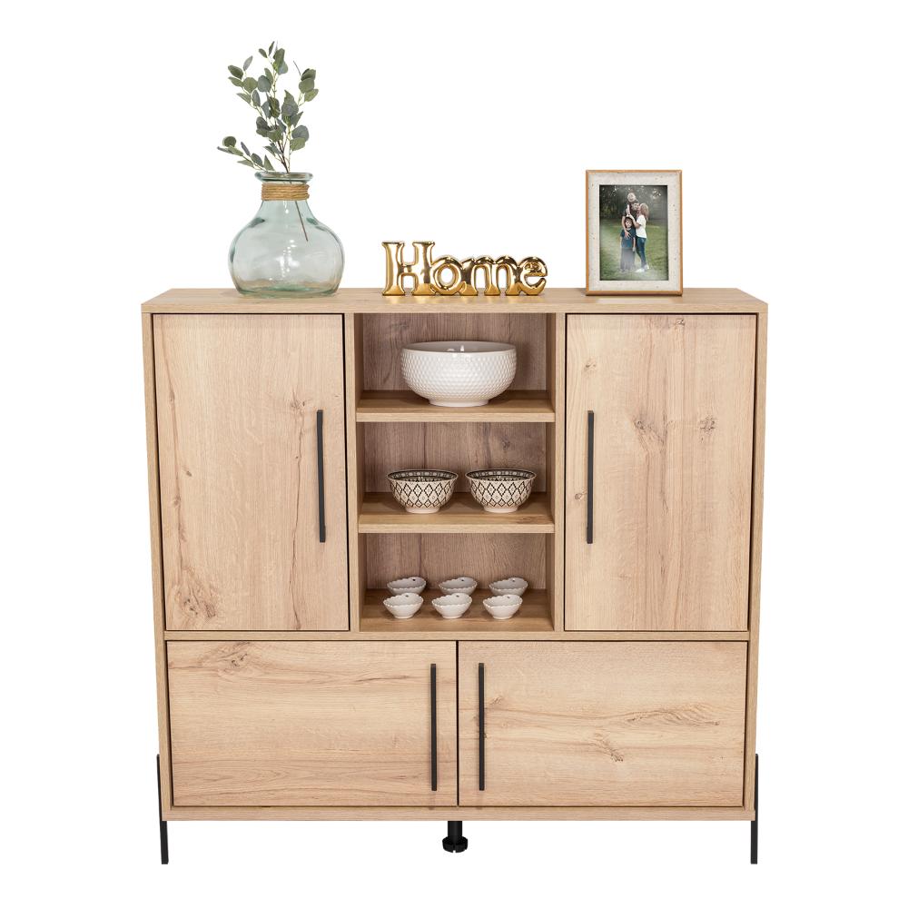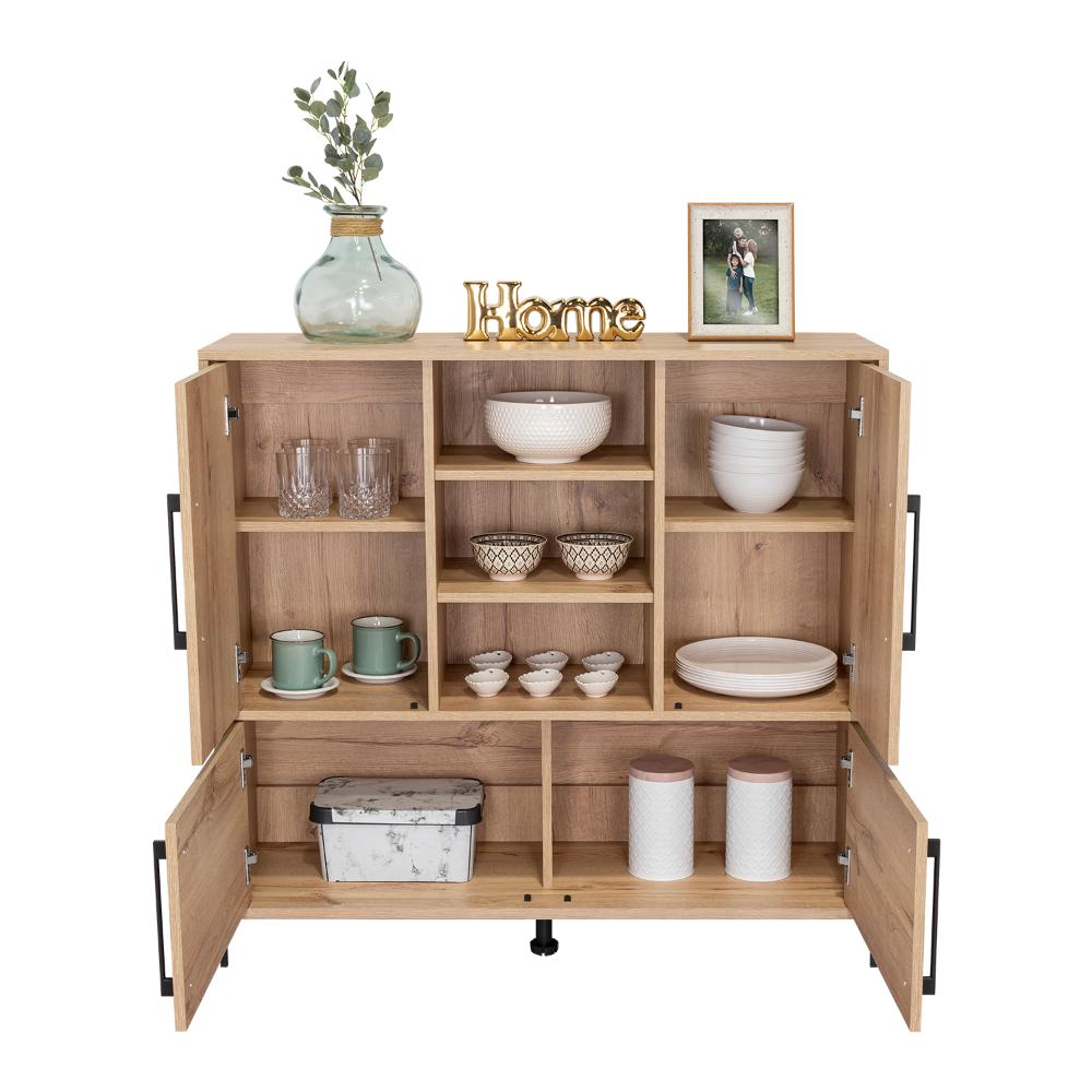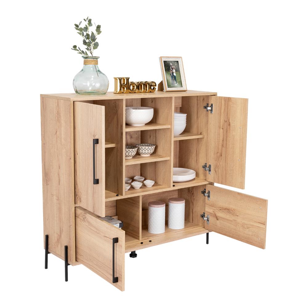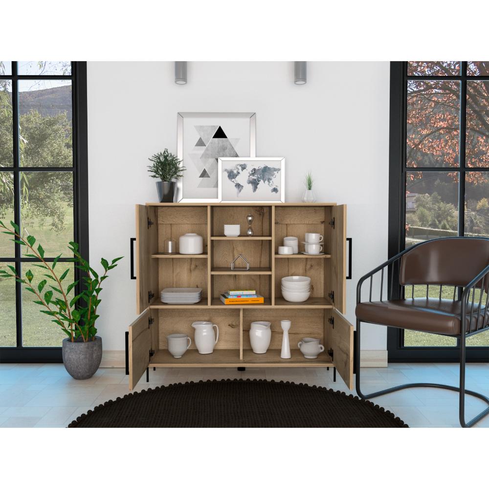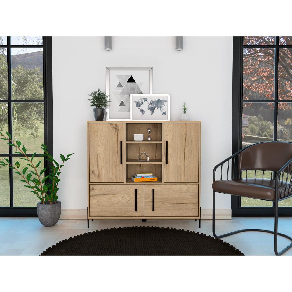 Mesa Auxiliar Roust, Café Claro, con Cuatro Puertas y Amplio Espacio de Almacenamiento