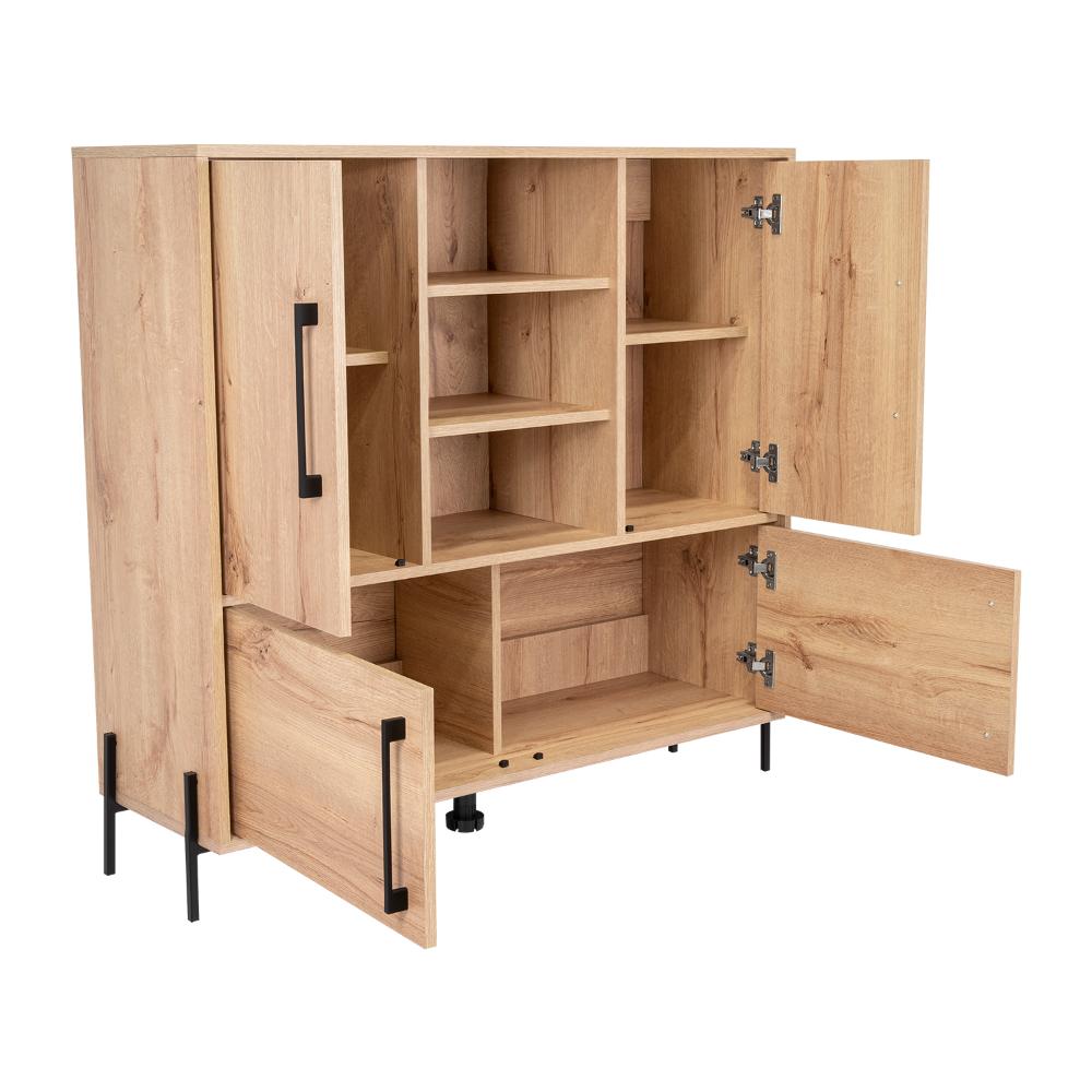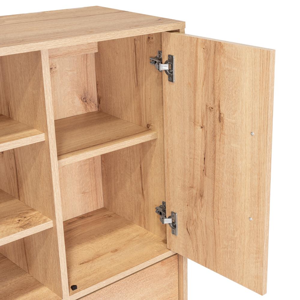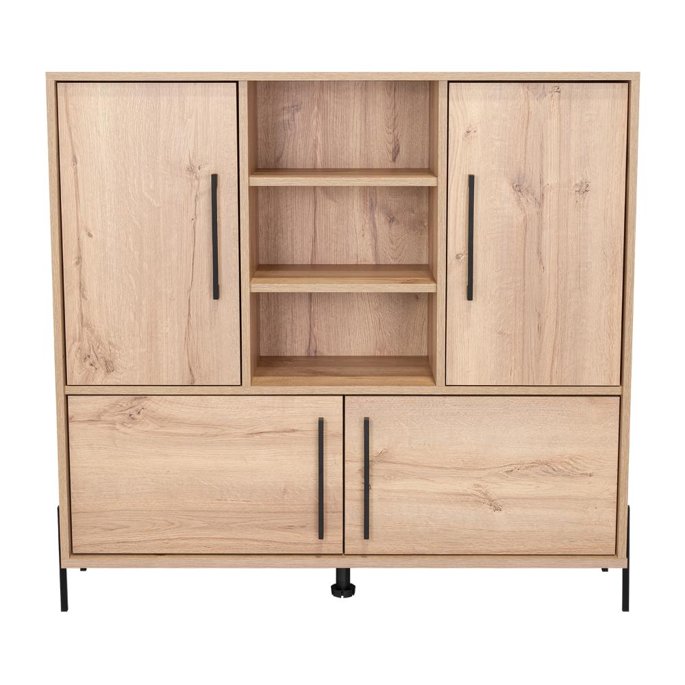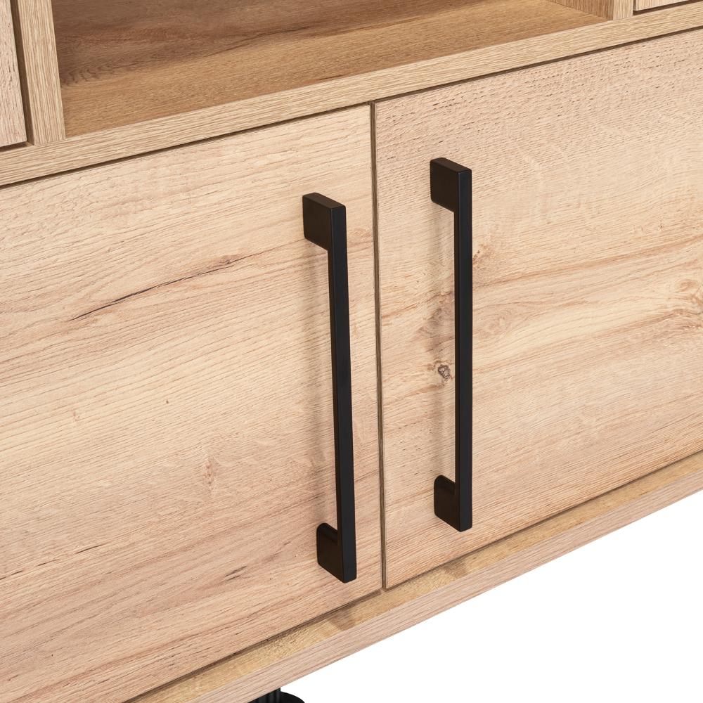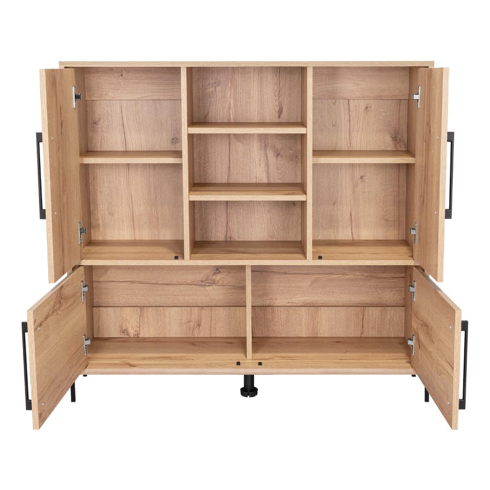 Mesa Auxiliar Roust, Café Claro, con Cuatro Puertas y Amplio Espacio de Almacenamiento