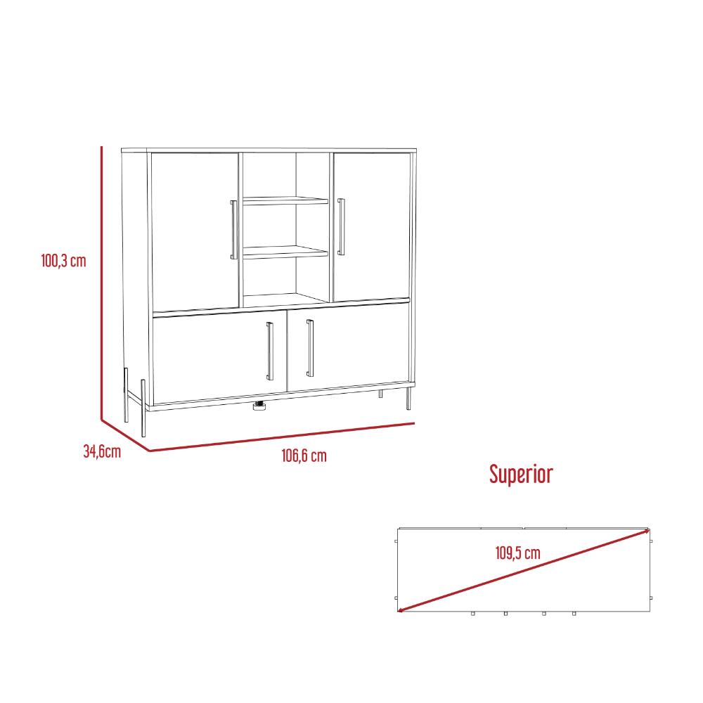 Mesa Auxiliar de Cocina, con cuatro puertas y amplio espacio de almacenaje.