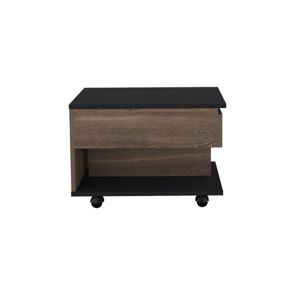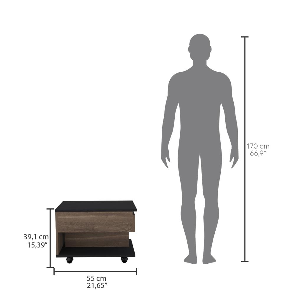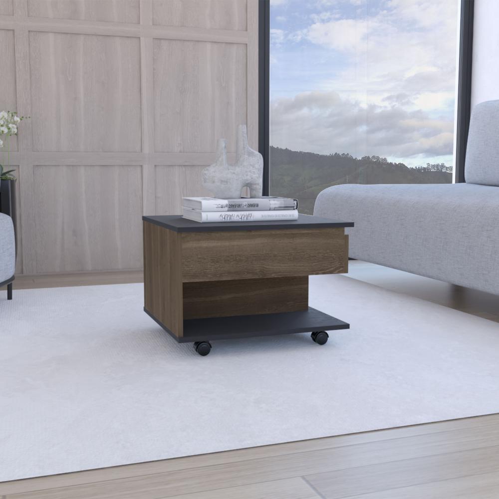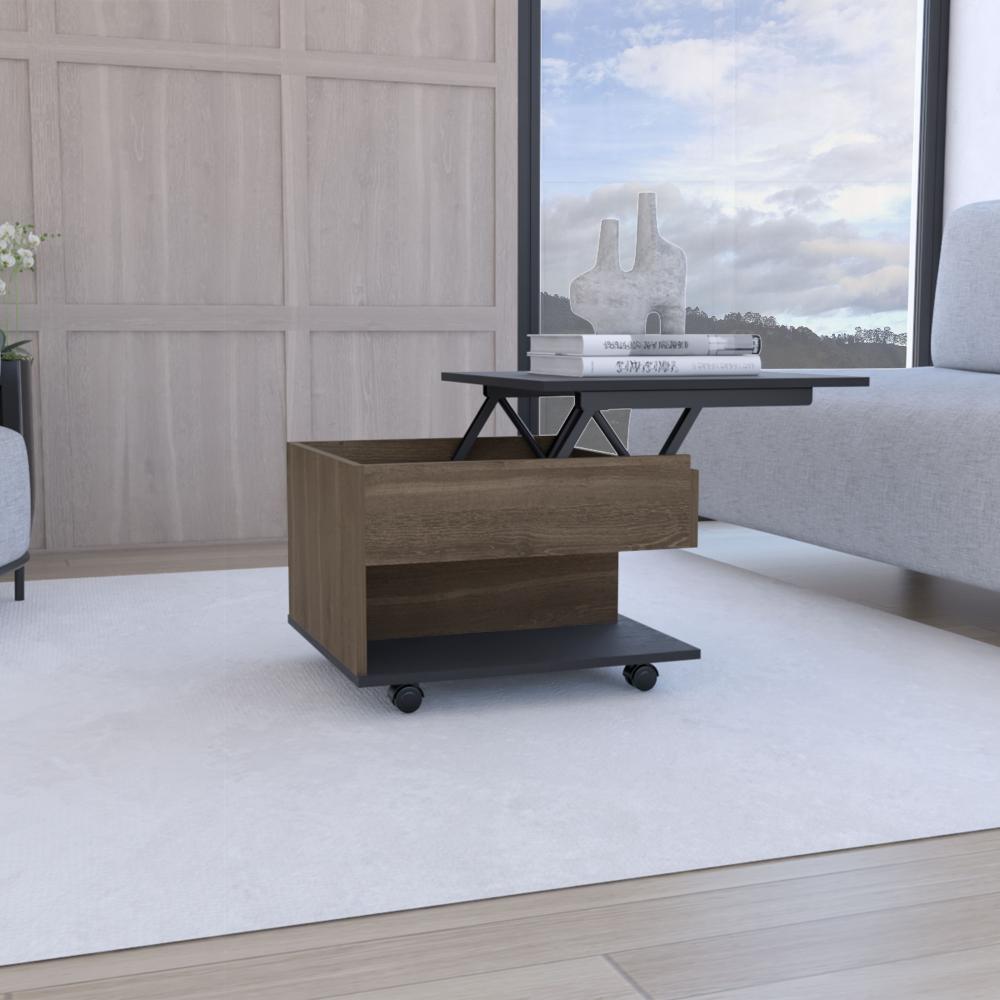 Mesa de Centro Extensible, con 1 cajón, 1 entrepaño y rodachines de freno para su fácil desplazamiento, y espacio para objetos decorativos, libros, revistas y otros.