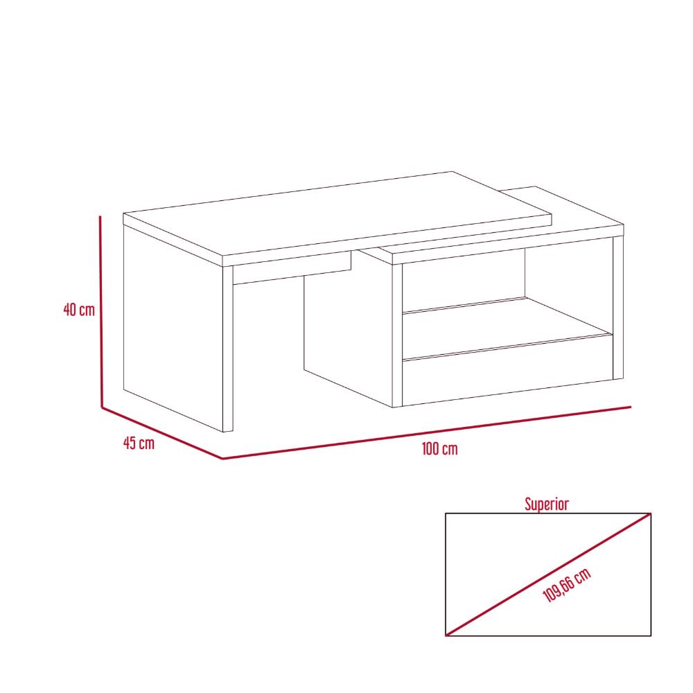 Mesa de Centro, con amplio espacio para elementos decorativos y superficie de dos niveles.