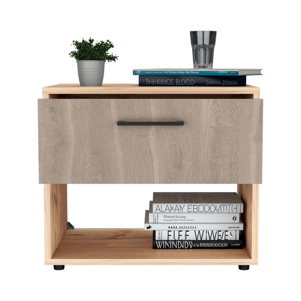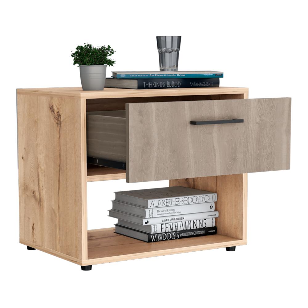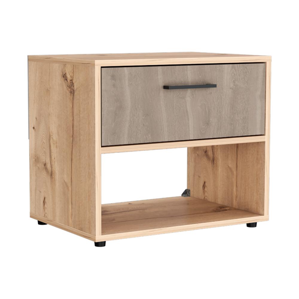 Mesa de Noche Alan, Café Claro y Bardolino, con un cajon y manija metalica