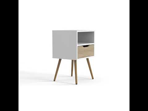 Mesa de Noche Alesio, Blanco y Beige, con Patas cortas en Madera y un Cajón