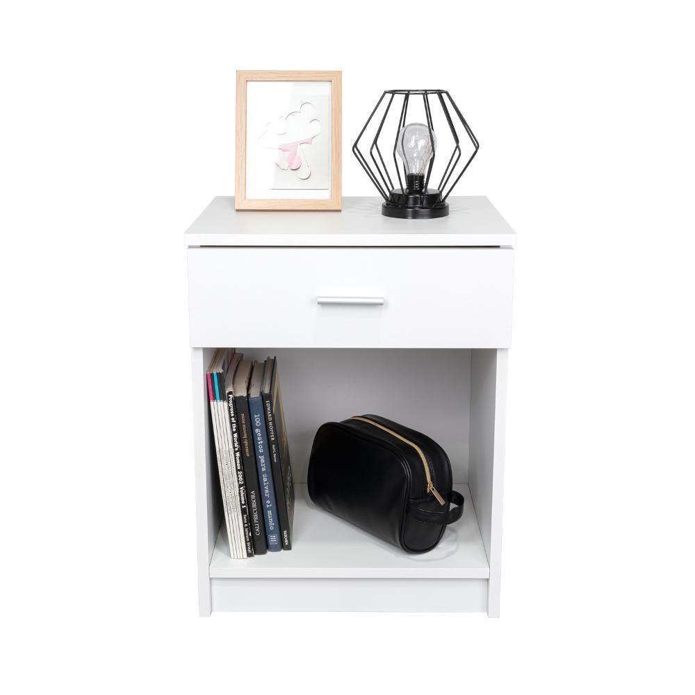 Mesa de Noche Bonaire, Blanco Vainilla, con Un Cajon Multiuso