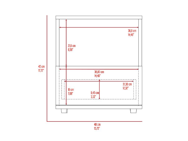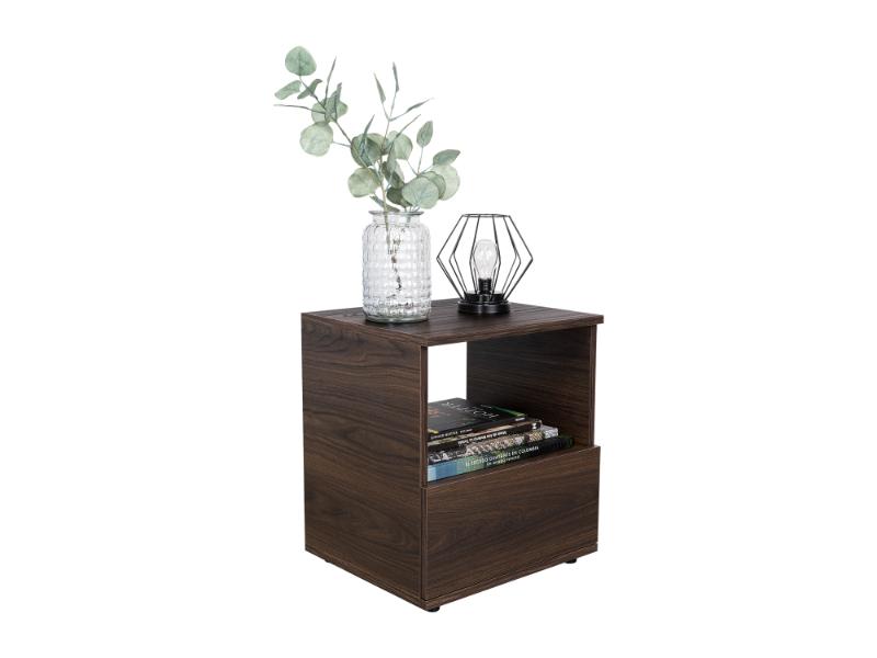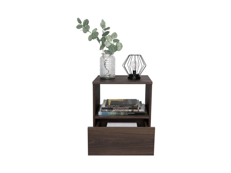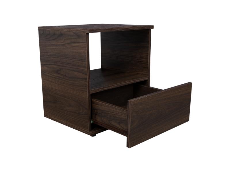 Mesa de noche con Diseño práctico, Espacio para colocar objetos decorativos, un cajón inferior deslizable, deslizadores plásticos, fácil armado e instalación.