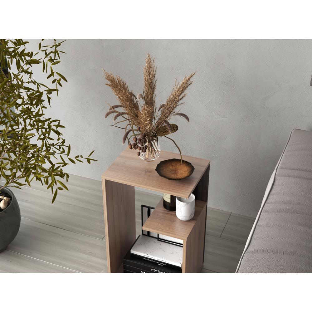 Mesa Auxiliar, con diseño moderno y espacio para objetos decorativos, libros, discos Lp y otros.