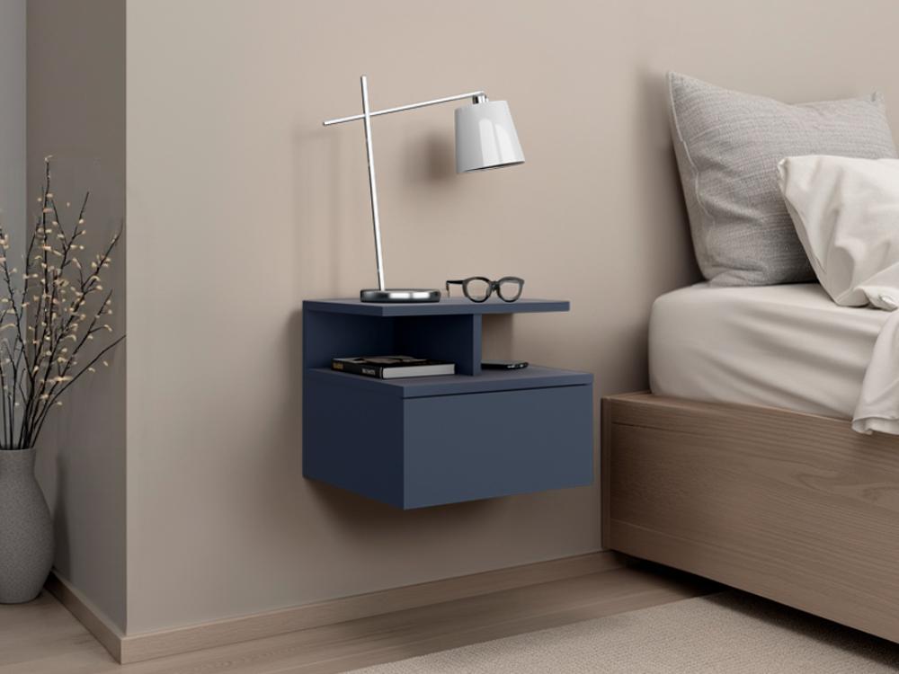 Mesa de Noche Flotante Nube, Kronos Azul, con un Cajón y División de dos Entrepaños