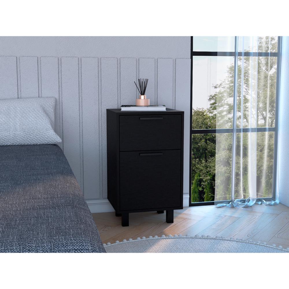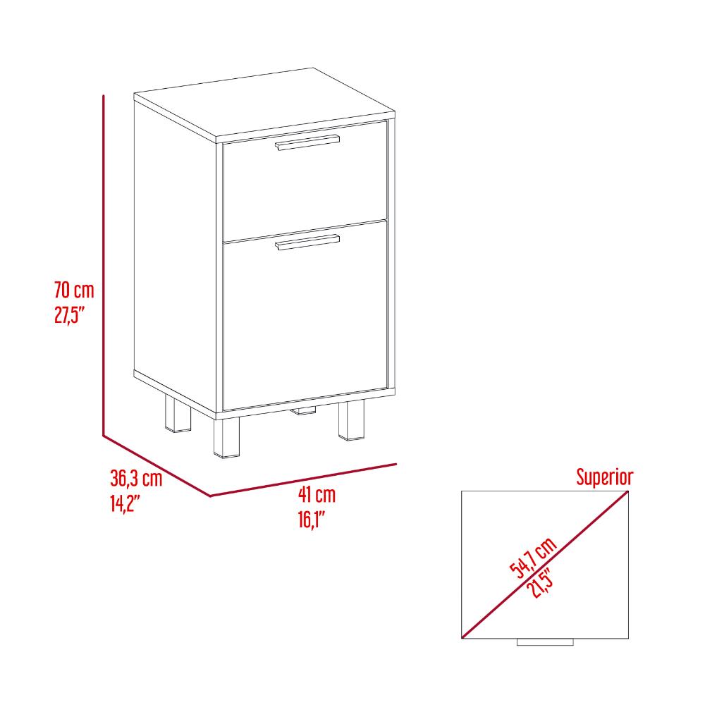 Mesa de Noche, con espacio interior para Almacenar objetos, una puerta abatible y un cajón secreto, diseño moderno