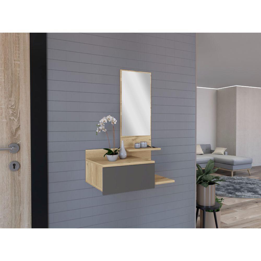 Mesa Flotante Recibidor Viena, Café Claro y Plata Oscuro, con un Cajón