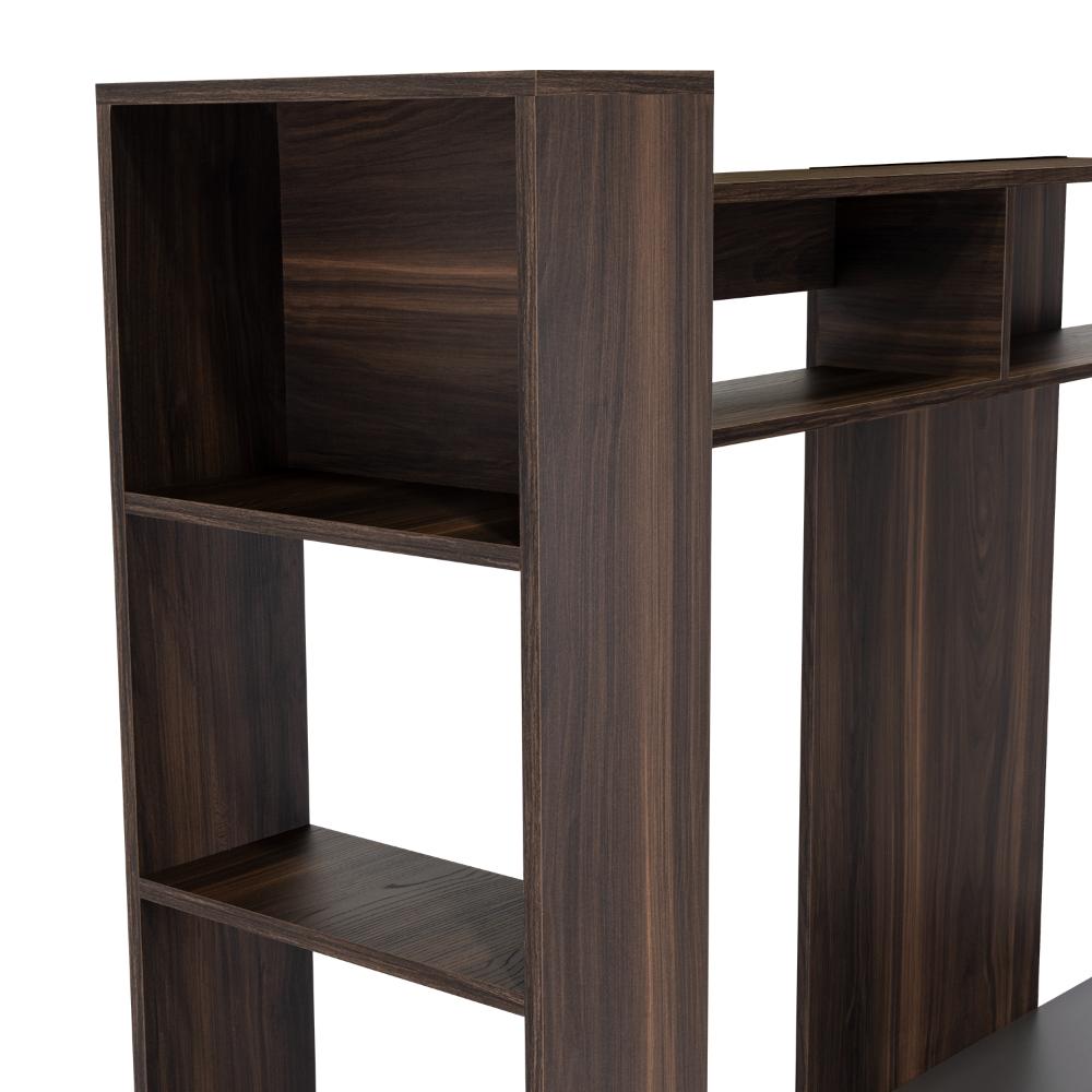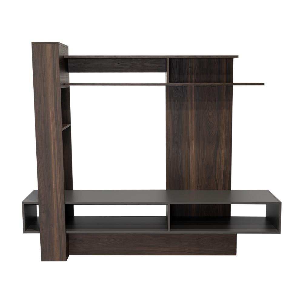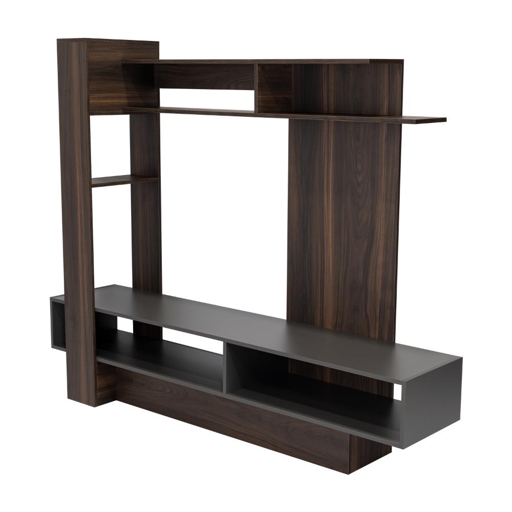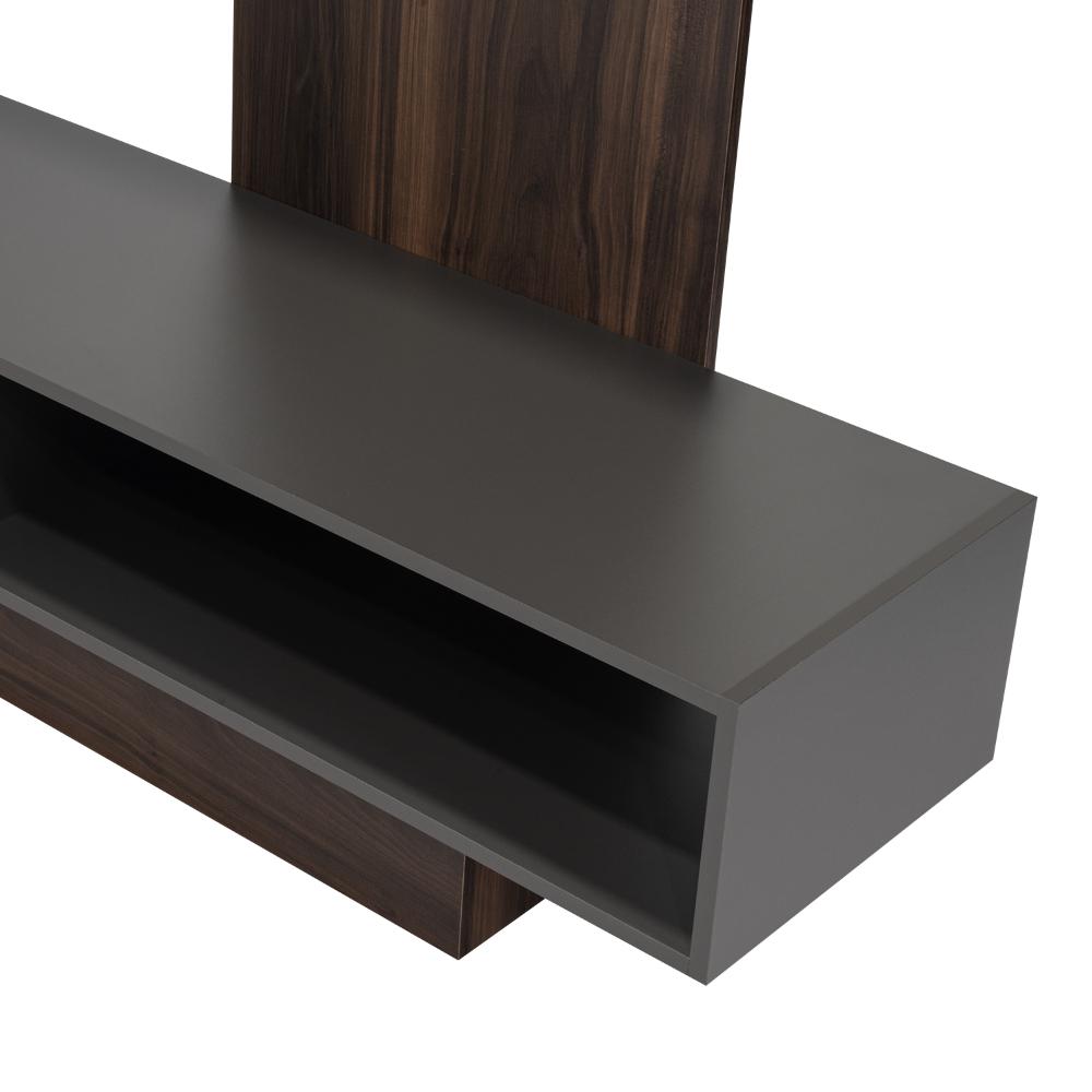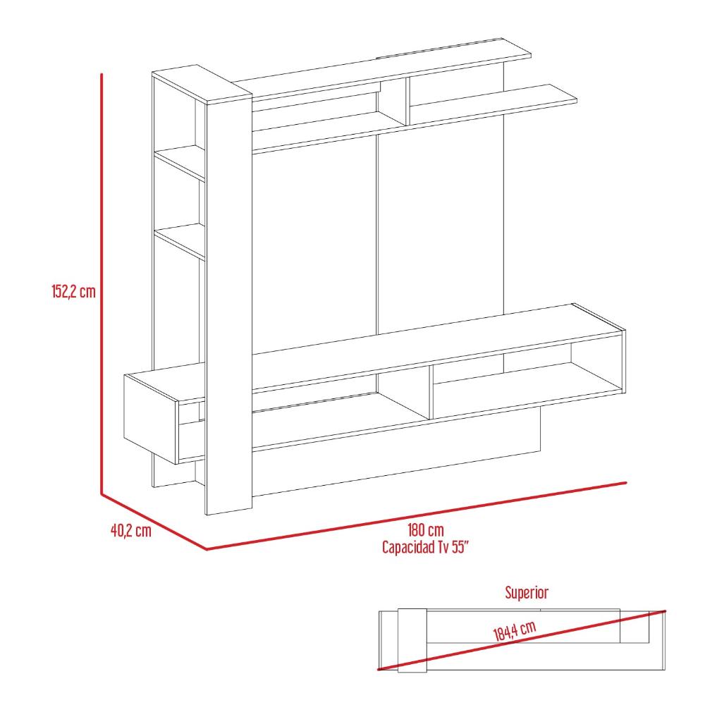 Mesa para TV, con espacio para televisor de máximo 55", diseño moderno con combinación de colores, amplios espacios para objetos decorativos.