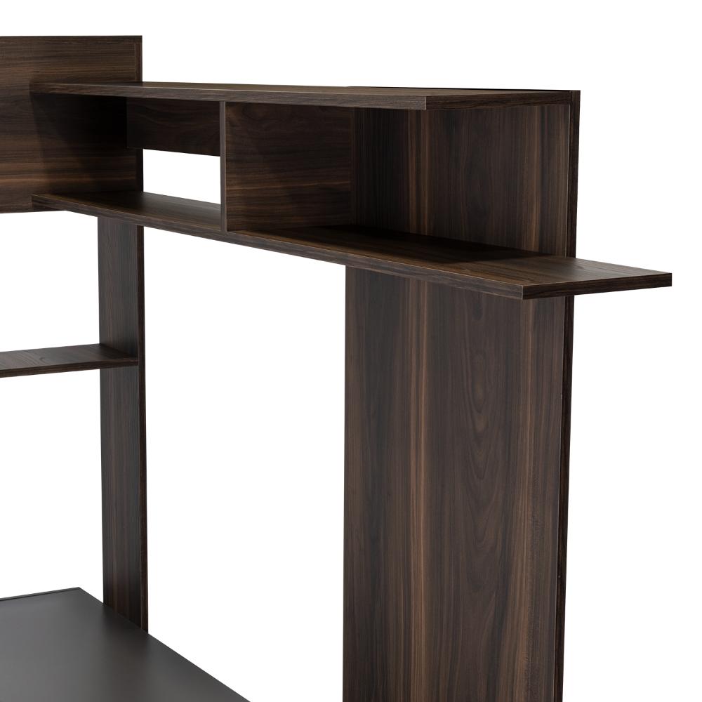 Elaborado en Madera aglomerada MDP, recubierta con láminas melamínicas de excelente calidad, en color Caoba y Plata oscuro.