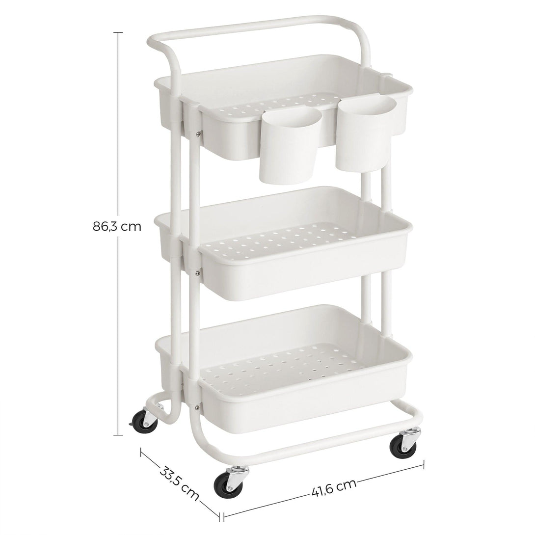Mueble Auxiliar Multiusos Rolling, Blanco, con Tres niveles y Rodachines Para Su Fácil Desplazamiento
