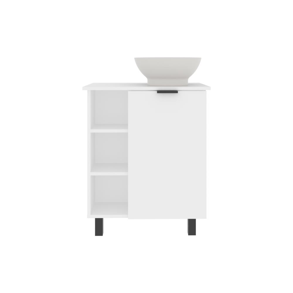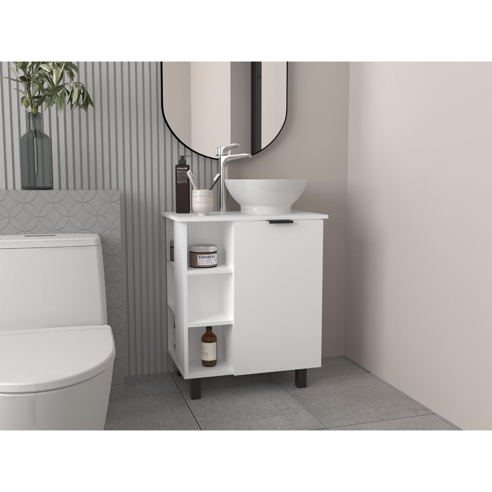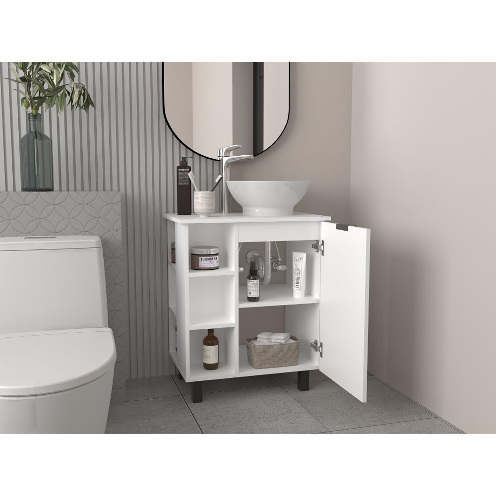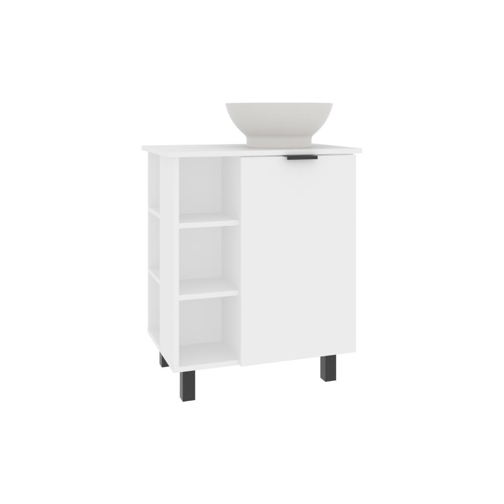 Mueble Lavamanos, con una puerta abatible, un entrepaño interno, 4 entrepaños externos que le brindan un toque de modernidad, y con gran espacio para colocar objetos.
