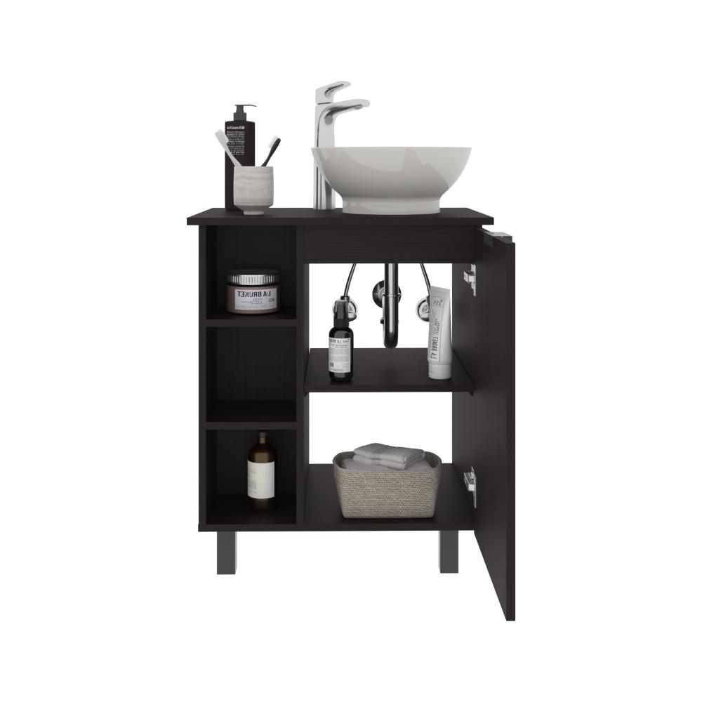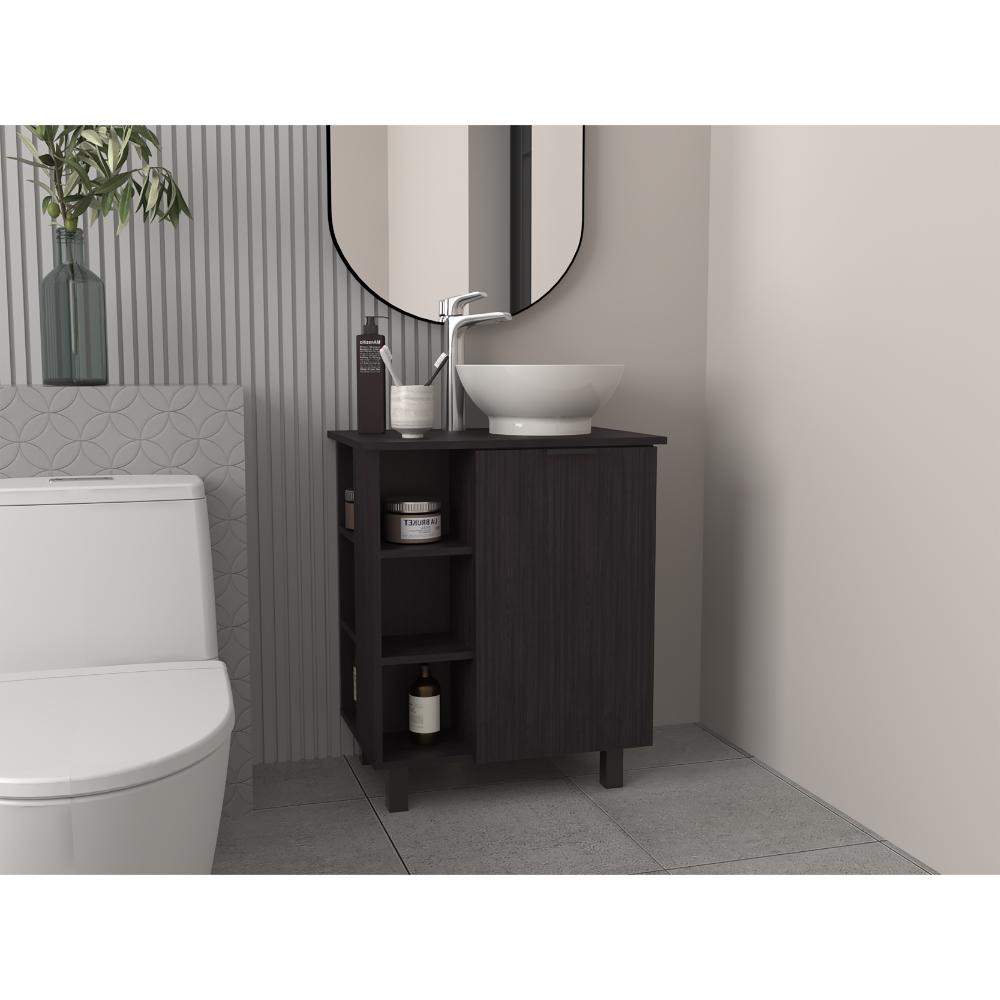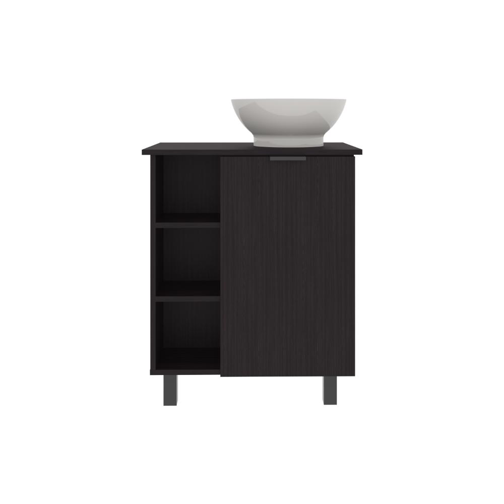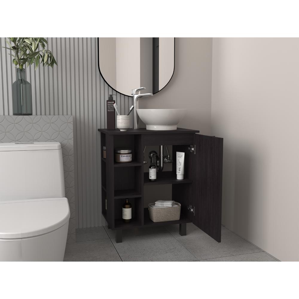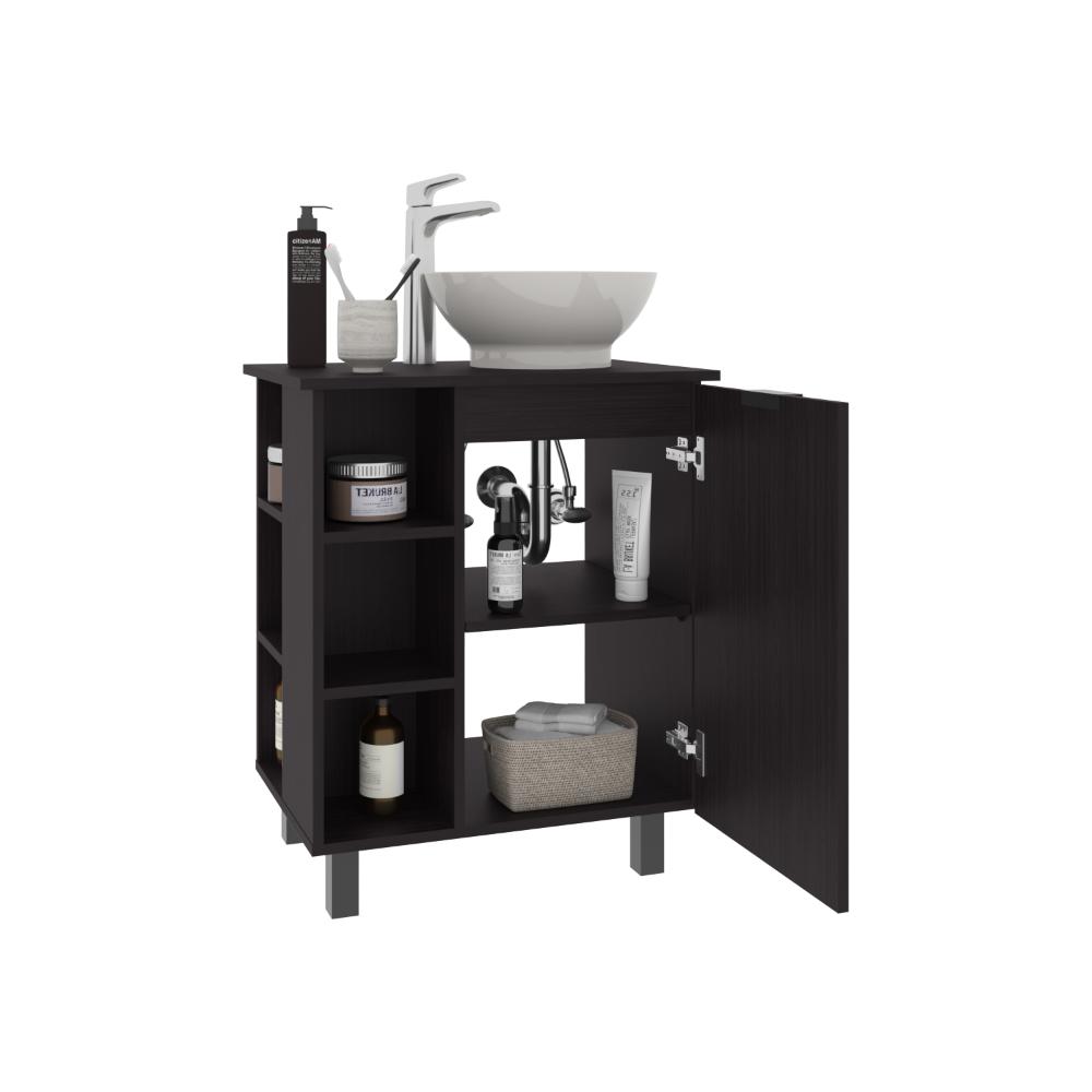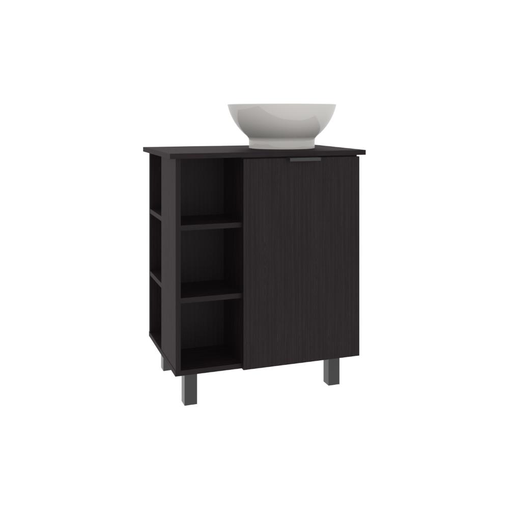 Mueble Lavamanos, con una puerta abatible, un entrepaño interno, 4 entrepaños externos que le brindan un toque de modernidad, y con gran espacio para colocar objetos.