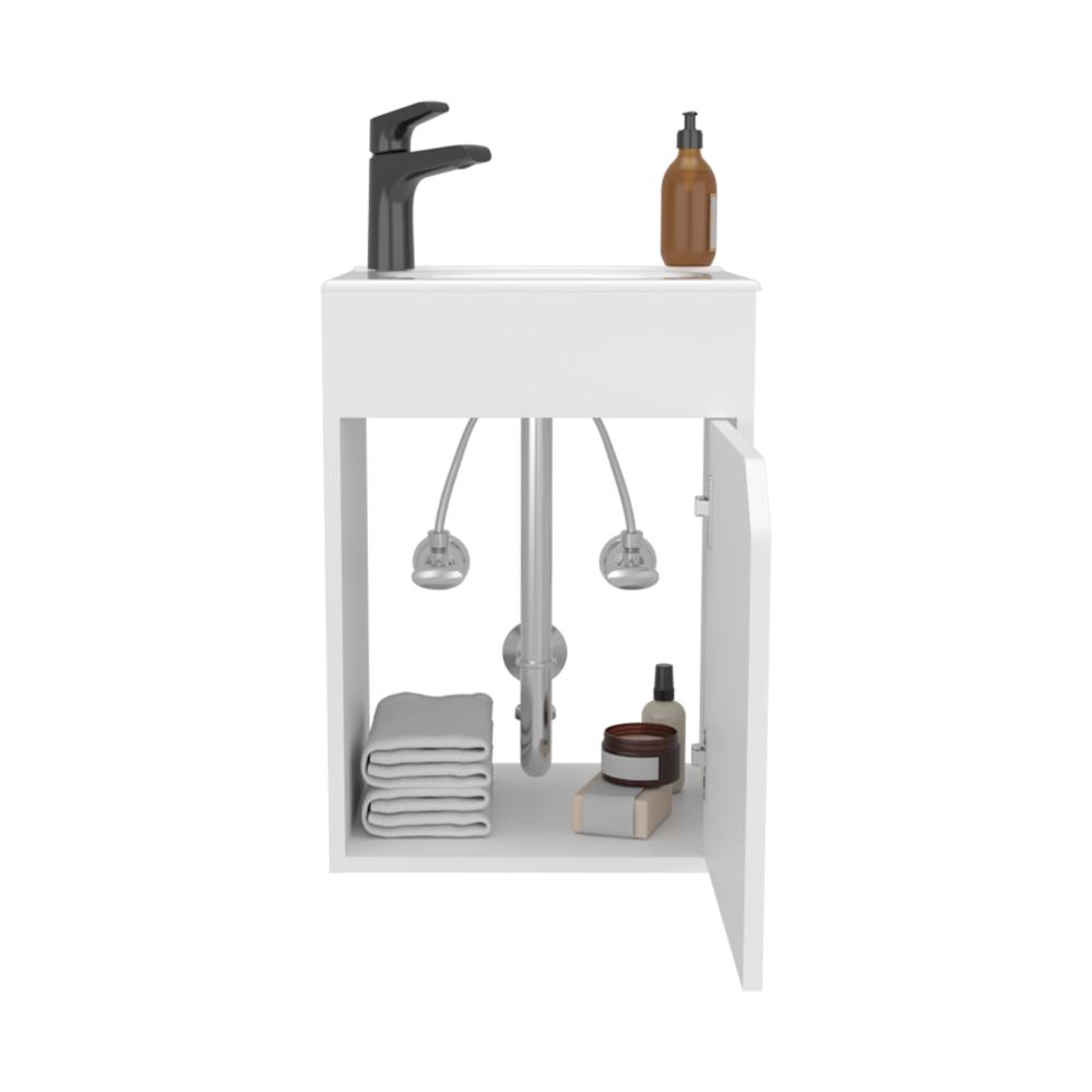 Mueble Lavamanos, con una puerta abatible y con espacio para colocar articulos de baño.