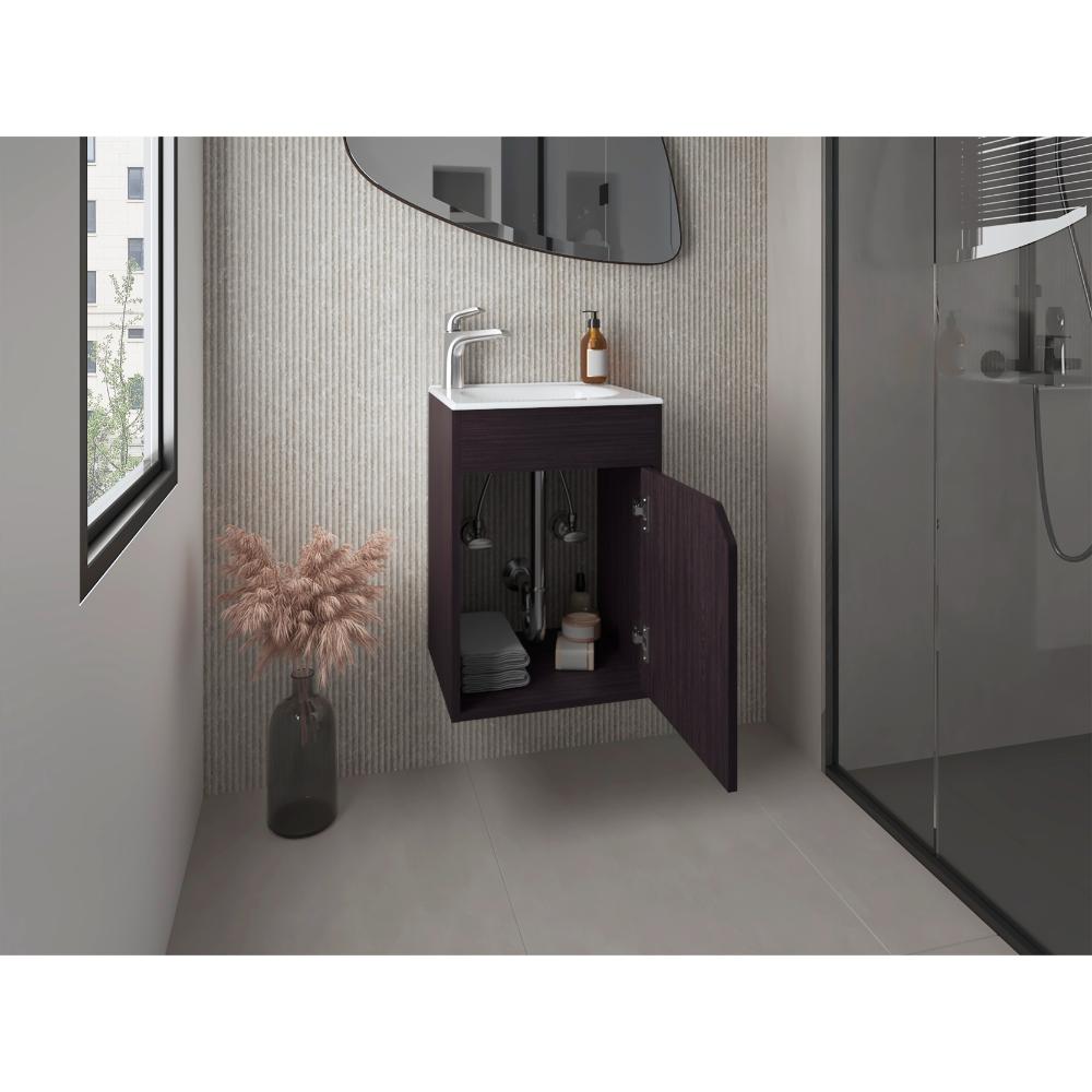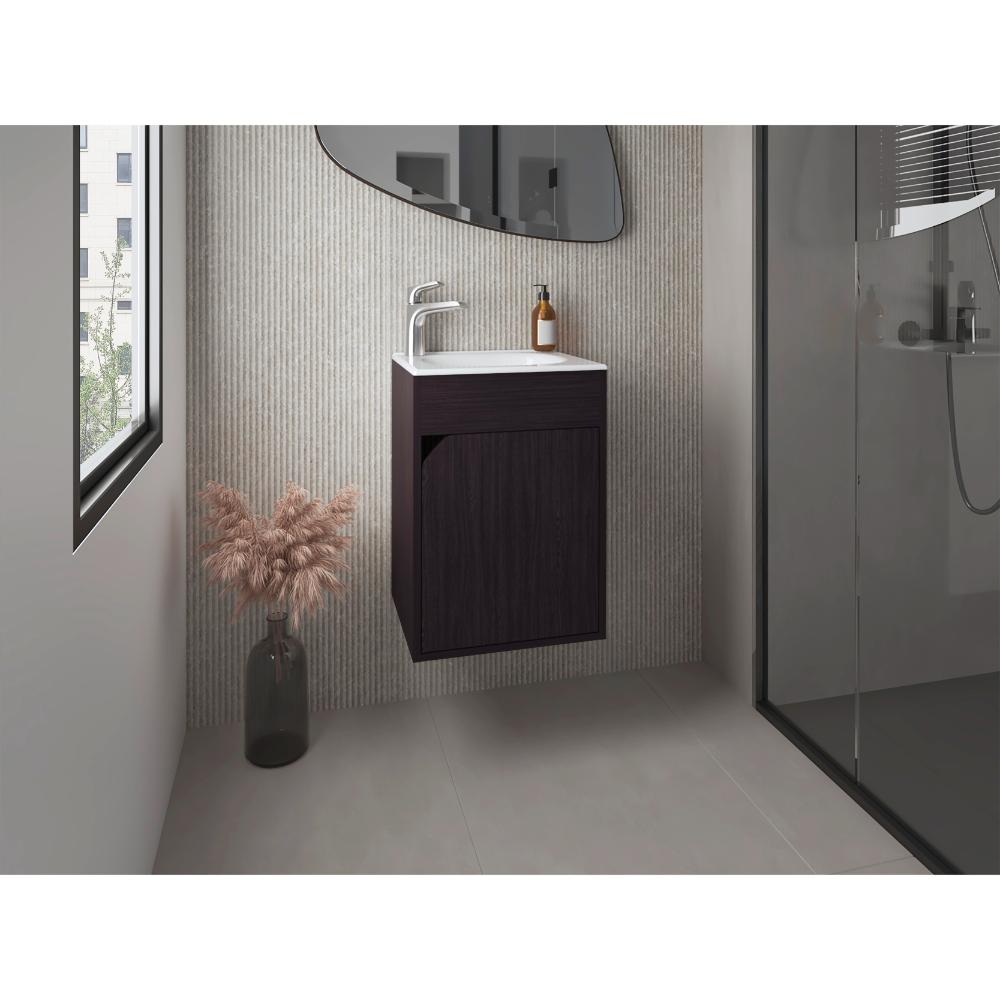 Mueble Para Lavamanos Flotante Betel, Wengue, Incluye Lavamanos Plastiglas Floresta 40 ZF