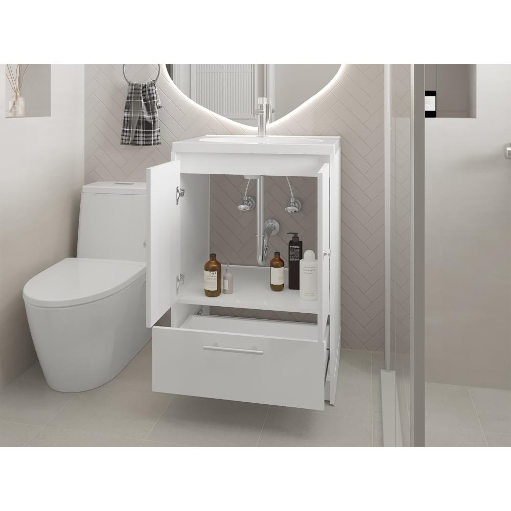 Mueble Lavamanos, con espacio para almacenar objetos, 2 puerta abatibles, 1 cajón, es de fácil instalación e incluye lavamanos