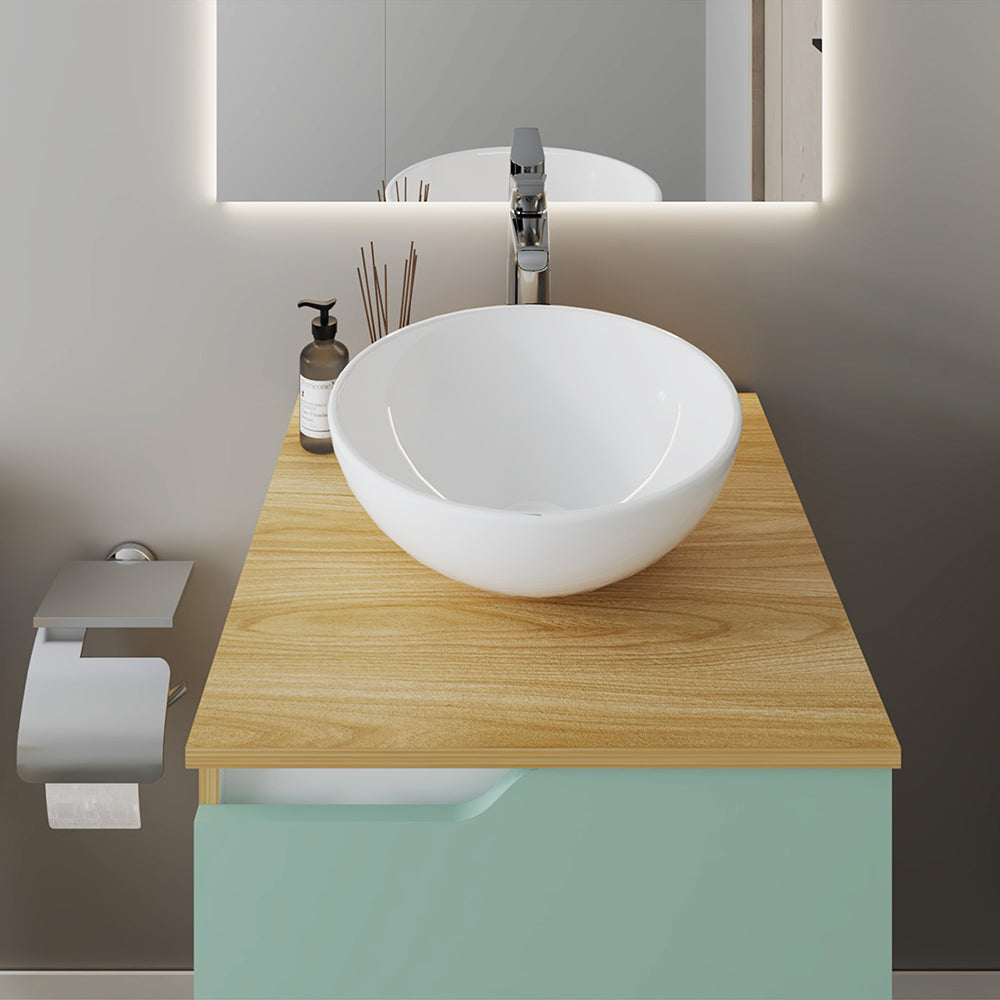 Mueble Para Lavamanos Mice, Agave y Fresno Europeo, Incluye Lavamanos Corona en Porcelana Sanitaria