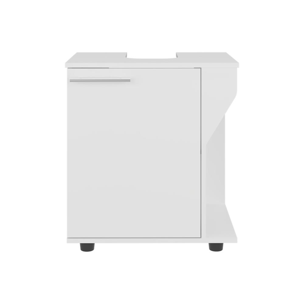 Mueble Lavamanos, con espacio para colocar objetos, una puerta abatible, una manija metalica y es de facil instalación