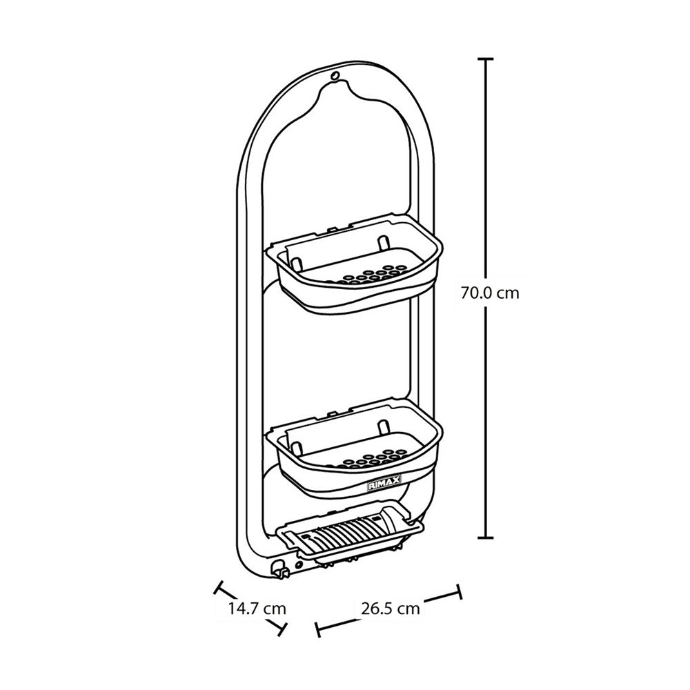Tres entrepaños con el tamaño ideal de los envases. Bandejas mas profundas y con mayor altura y perforaciones que permiten filtrar el agua y facilitan la limpieza. Adaptador que facilita instalar en cualquier tamaño de grifo ; pared o ducha; se puede retirar o dejar a la preferencia. Jabonera con drenaje y espacio para rasuradora. 4 ganchos para colgar accesorios de ducha.