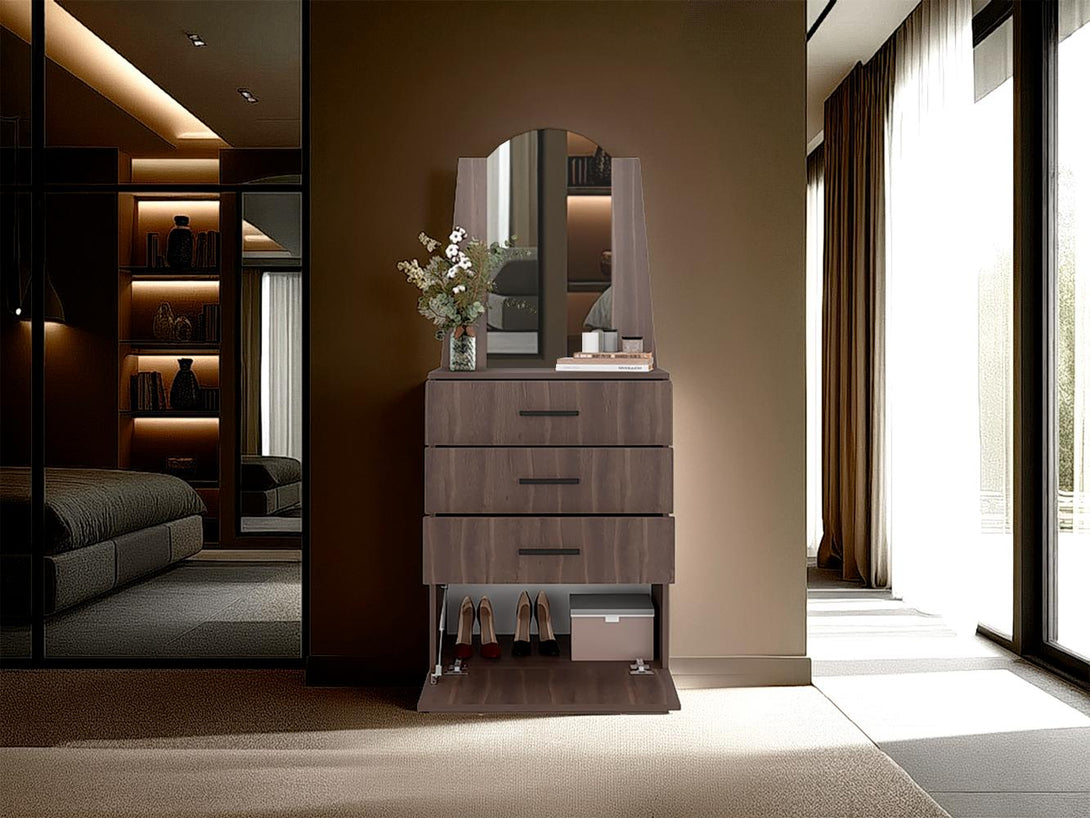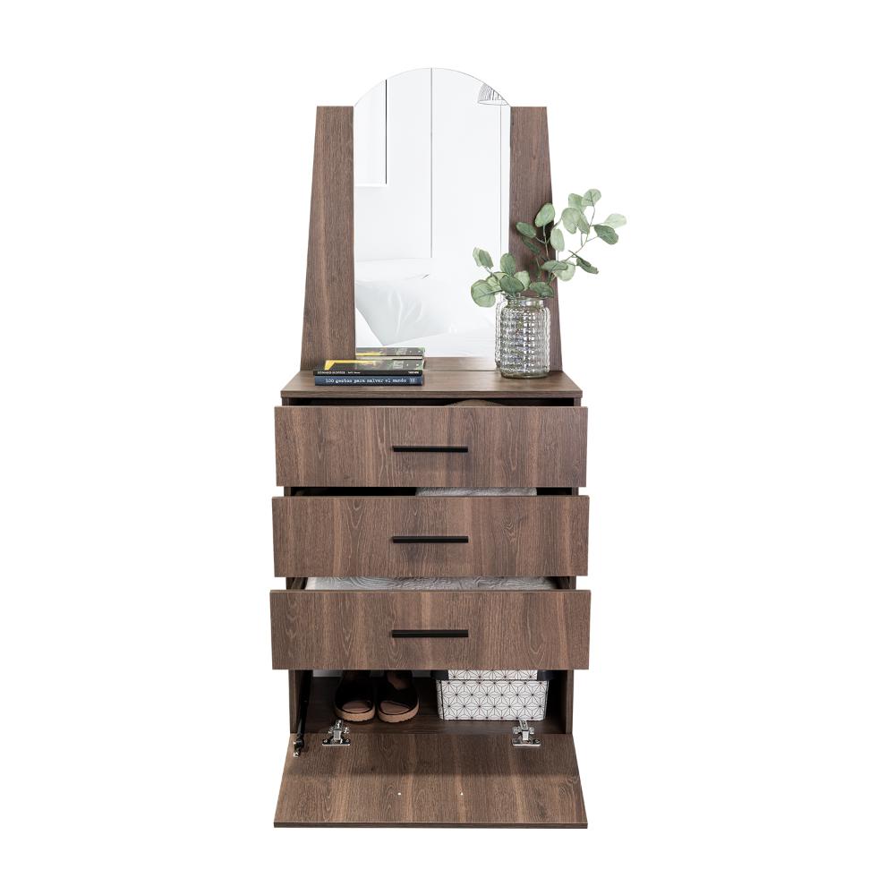 Organizador, cuenta con 3 cajones y 1 puerta, manija metalica, incluye espejo y es de facil instalación.