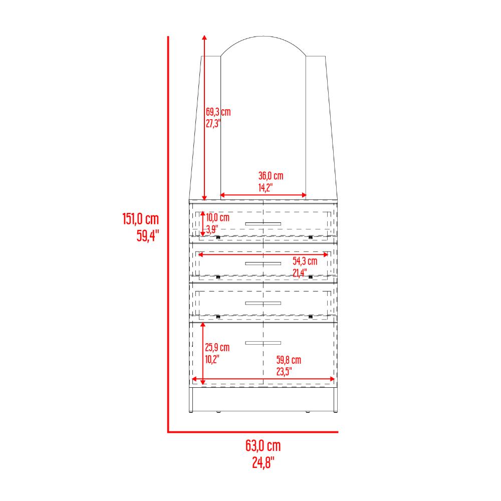 Organizador, cuenta con 3 cajones y 1 puerta, manija metalica, incluye espejo y es de facil instalación.