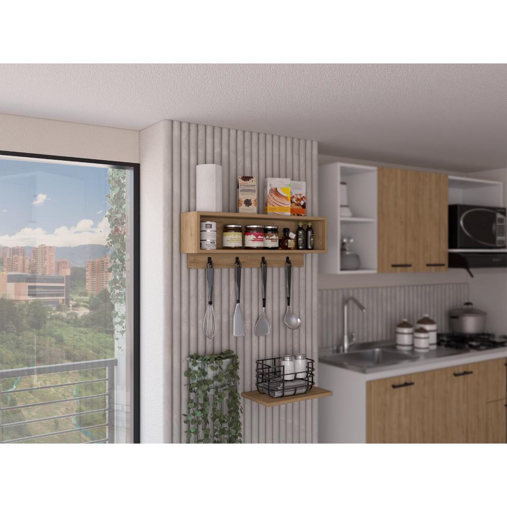 Estante Auxiliar, de facil armado, gabinete para artículos de cocina, cuatro ganchos y espacio para guardar objetos de cocina