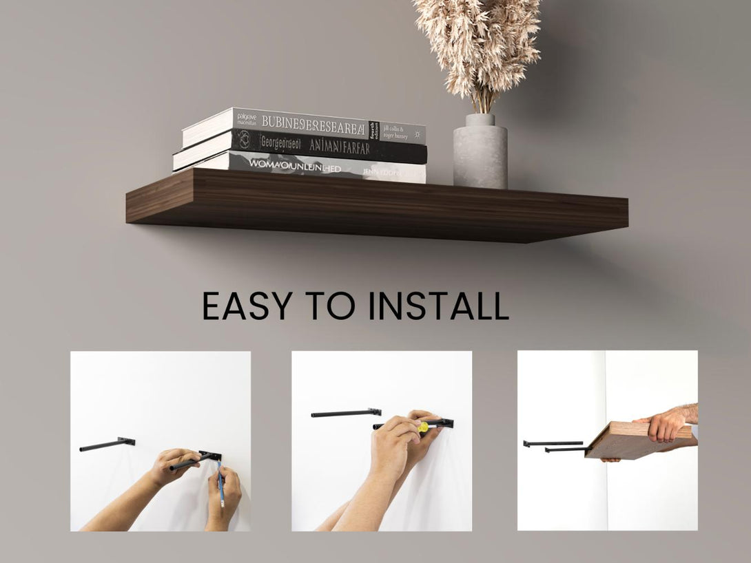Repisa Flotante, con espacio para ubicar objetos decorativos, equipos de audio video, entre otros. Incluye herraje para su instalación.