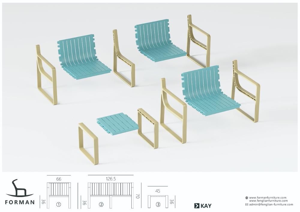 Elaborado en Polipropileno el set incluye mesa centro, dos sillas y un banco, en Color Azul Marino