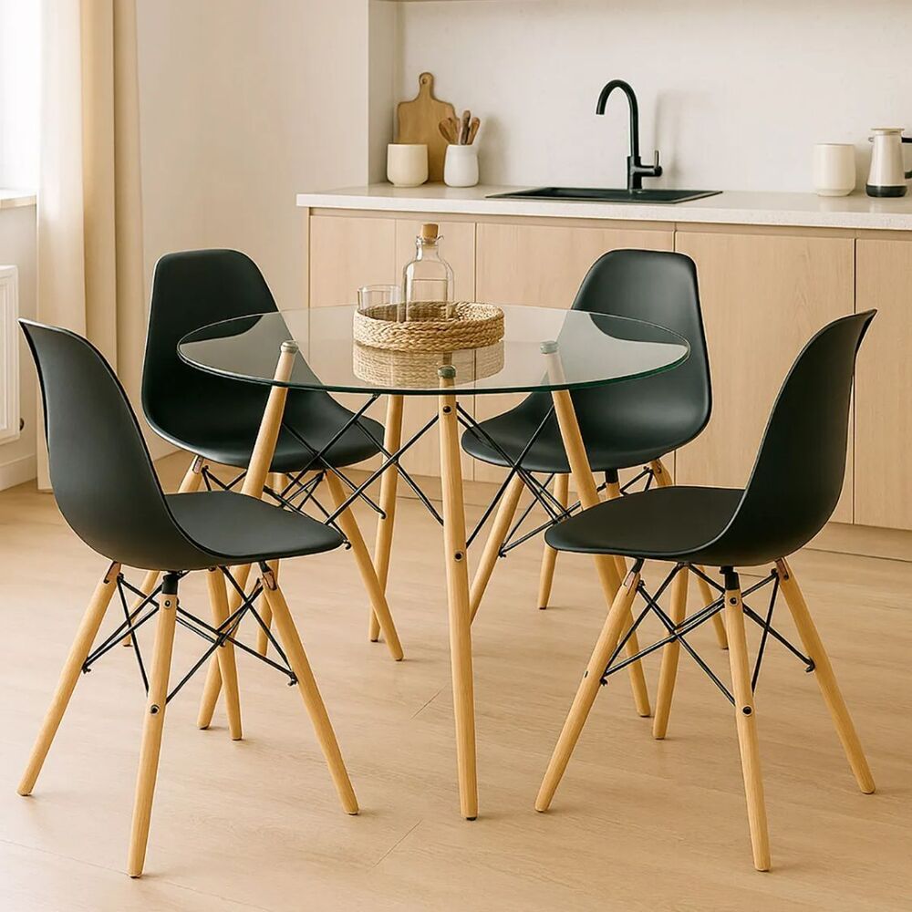 Set 2 Silla De Comedor Eames De Polipropileno Y Madera Negro