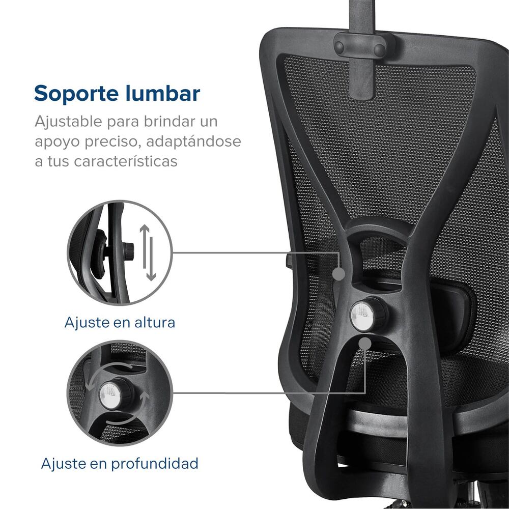 5. Cilindro neumático: Altura ajustable para adaptarla a tu escritorio