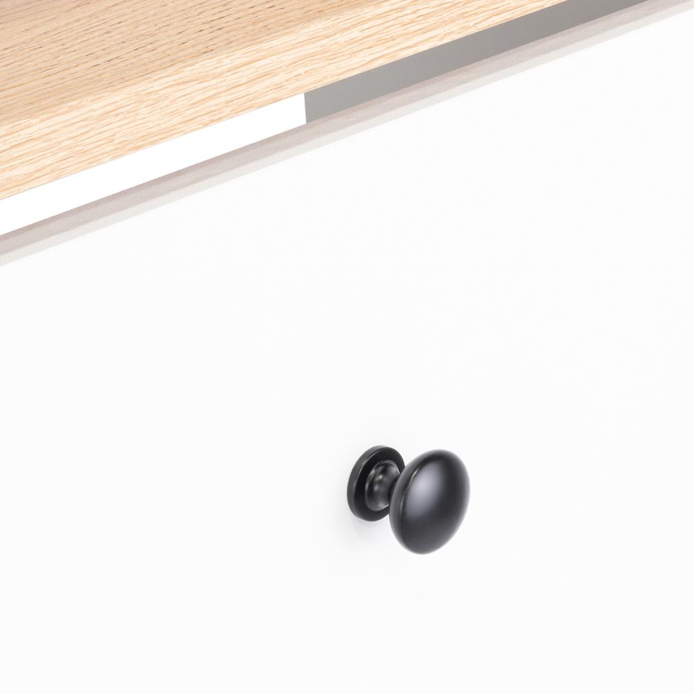 Elaborado en Madera aglomerada MDP, recubierta con láminas melamínicas de excelente calidad, en colorCafé Claro y Blanco Vainilla.